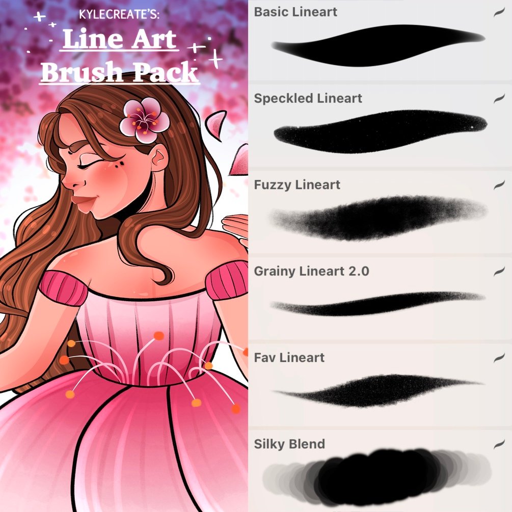 This Line Art Brush Pack Consists of 5 Line Art Brushes and a bonus Blending Brush as a thank you for the love and support on my last brush pack release!